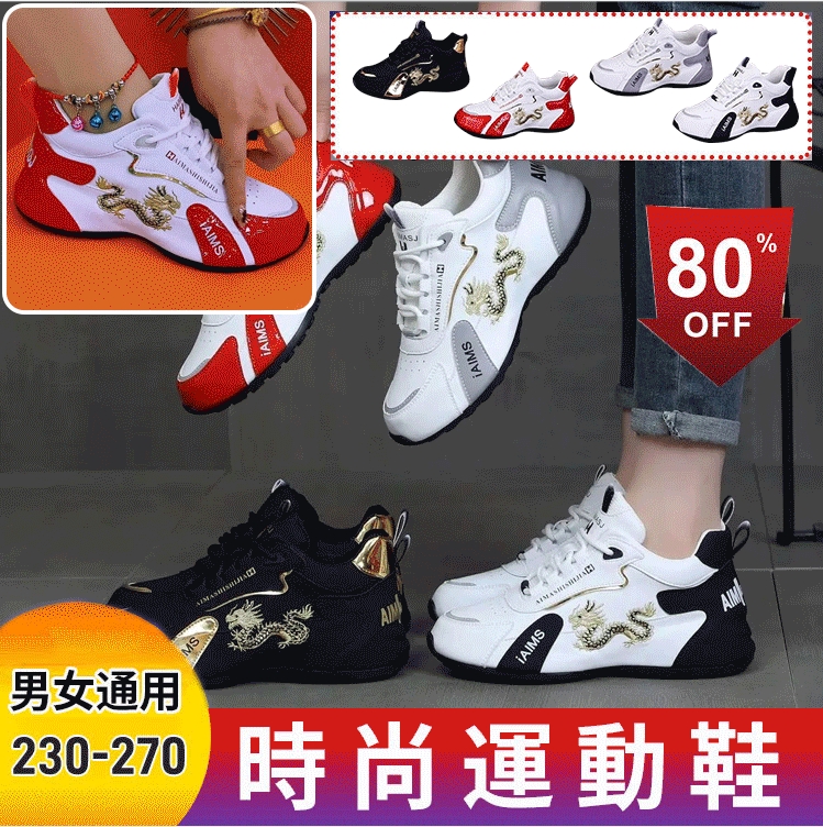 【龍年爆款】男女刺繡龍厚底按摩鞋,男女通用刺綉龍運動鞋,5cm厚底立顯高挑,防滑設計,特質皮革耐磨抗皺,運動健身,登山騎行或平日出行都適用,輕盈透氣!品牌大促銷,限時折扣,全場2折起,第二件僅需NT$400,機會難得,不容錯過!!!