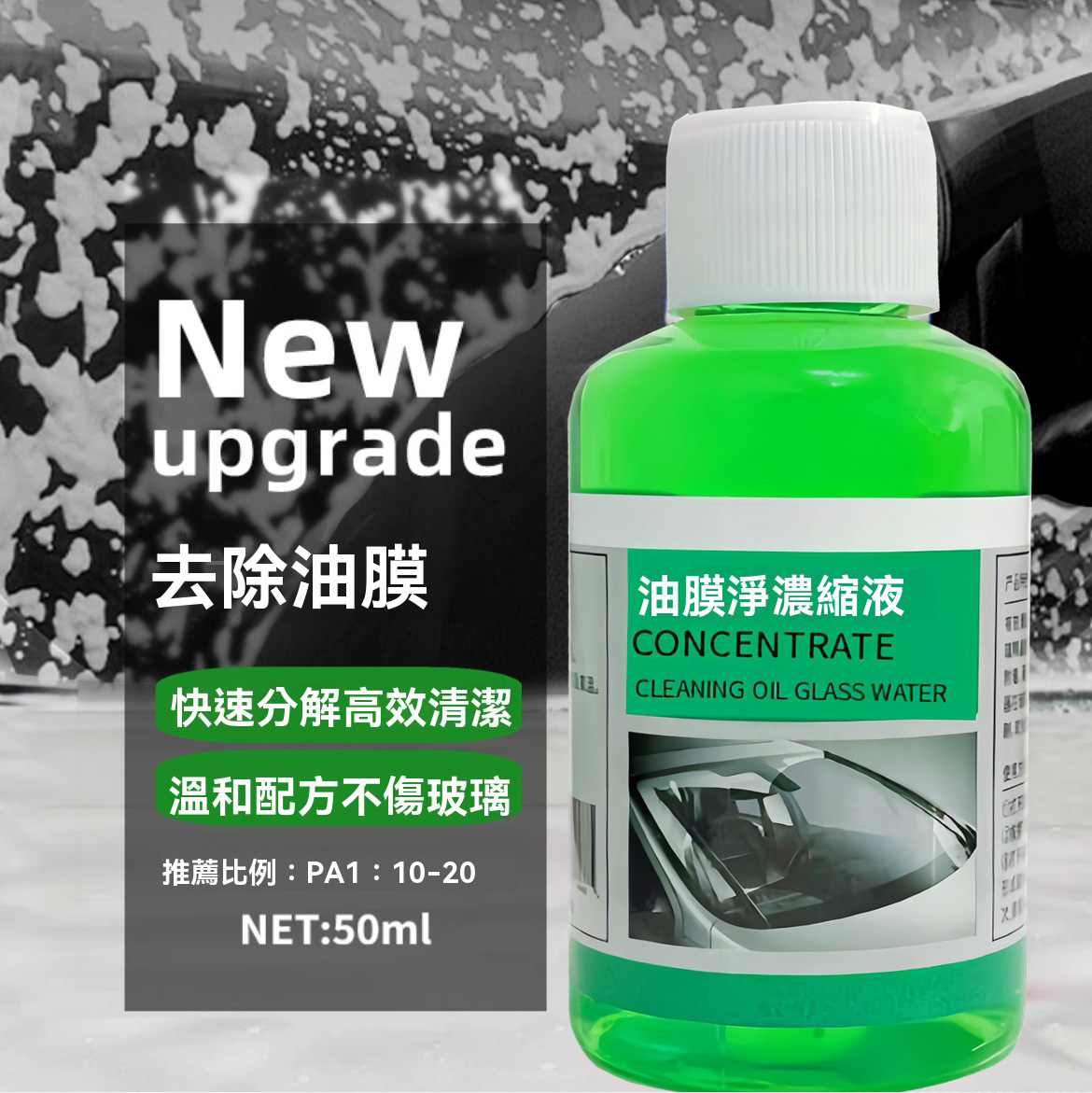 【玻璃油膜淨濃縮液】高效去除汽車擋風玻璃油膜去污持久50ML