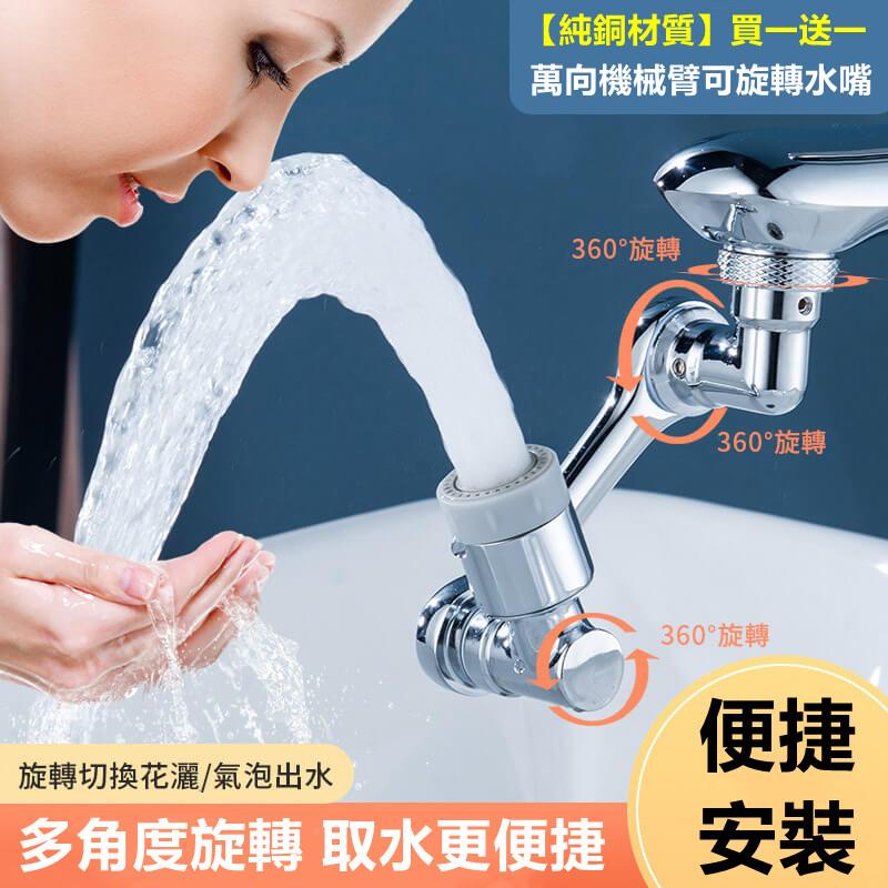 【純銅材質】萬向機械臂可旋轉水嘴 適配99%水龍頭,起泡防濺,洗漱再也不怕打濕衣服;可任意旋轉角度,滿足洗臉、洗頭、刷牙等不同的需求!(女生也會安裝、內含安裝工具)