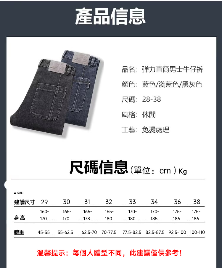 彈力直筒牛仔褲
