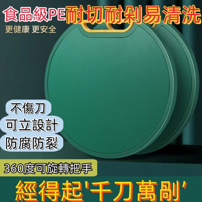 可旋轉式雙面圓形食品級菜板防黴北歐墨綠色切菜板!两面可用 耐砍耐摔 颜值超高!