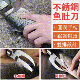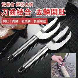 「廚房好物」不鏽鋼 去鱗破肚多用二合一魚鱗器 蝦線刀開蝦器