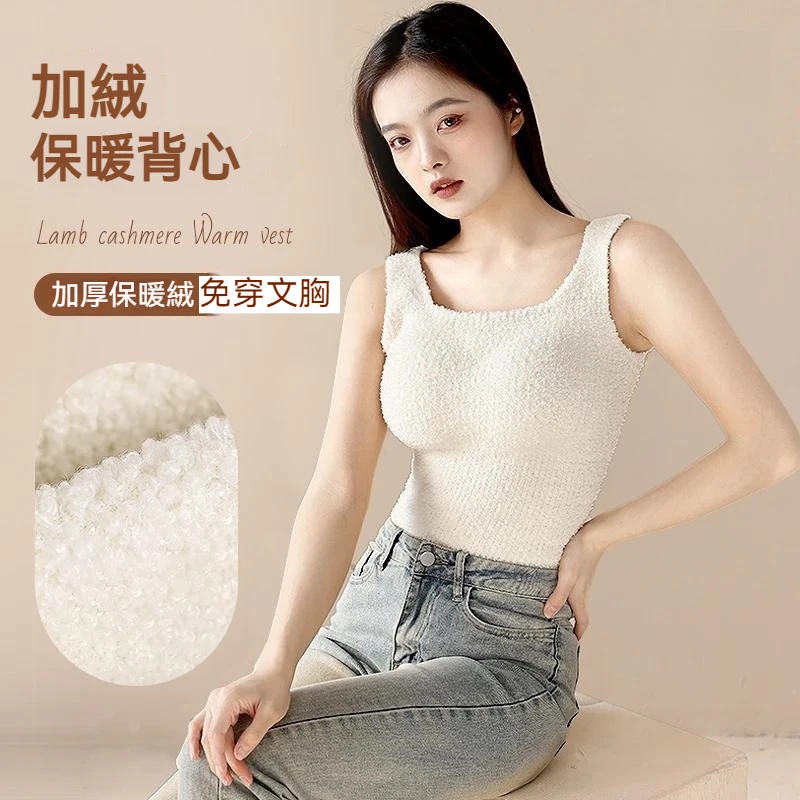 秋冬保暖神器!自帶胸墊加絨吊帶背心,毛絨絨超溫暖,免穿文胸,貼膚又蓄熱~!